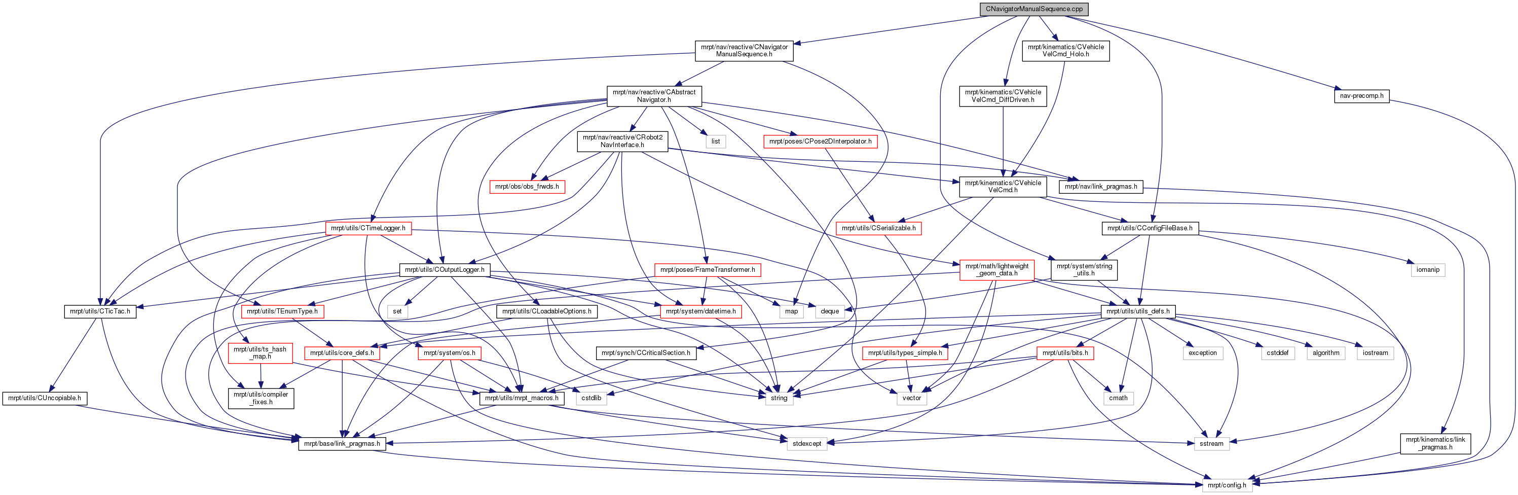 #include "nav-precomp.h"#include <mrpt/nav/reactive/CNavigatorManualSequence.h>#include <mrpt/utils/CConfigFileBase.h>#include <mrpt/system/string_utils.h>#include <mrpt/kinematics/CVehicleVelCmd_DiffDriven.h>#include <mrpt/kinematics/CVehicleVelCmd_Holo.h>