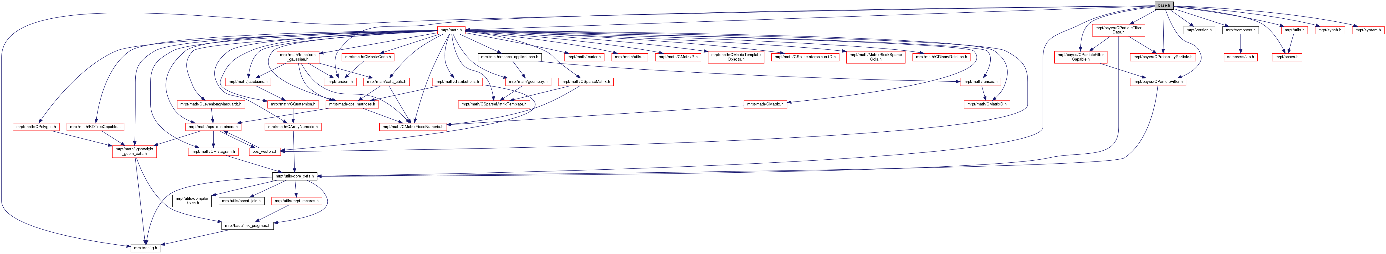 #include <mrpt/utils/core_defs.h>#include <mrpt/config.h>#include <mrpt/version.h>#include <mrpt/compress.h>#include <mrpt/math.h>#include <mrpt/poses.h>#include <mrpt/random.h>#include <mrpt/synch.h>#include <mrpt/system.h>#include <mrpt/utils.h>#include <mrpt/bayes/CParticleFilter.h>#include <mrpt/bayes/CParticleFilterCapable.h>#include <mrpt/bayes/CParticleFilterData.h>#include <mrpt/bayes/CProbabilityParticle.h>