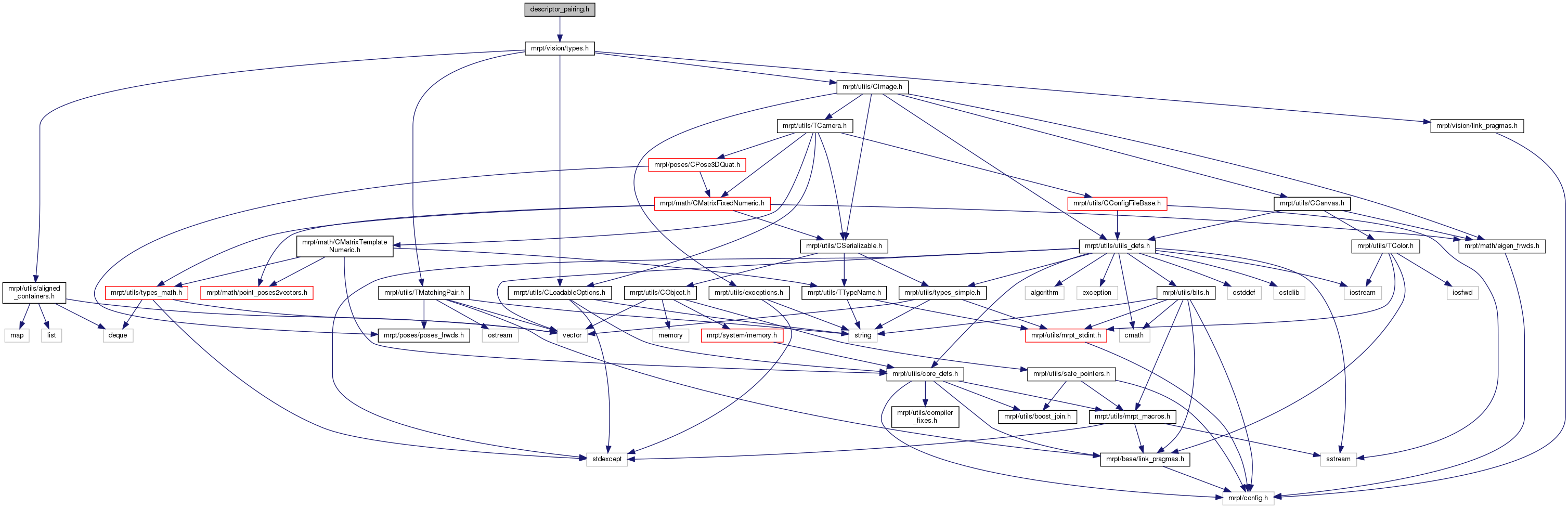 | size_t | mrpt::vision::find_descriptor_pairings (std::vector< vector_size_t > *pairings_1_to_multi_2, std::vector< std::pair< size_t, size_t > > *pairings_1_to_2, const CFeatureList &feats_img1, const DESCRIPTOR_KDTREE &feats_img2_kdtree, const mrpt::vision::TDescriptorType descriptor=descSIFT, const size_t max_neighbors=4, const double max_relative_distance=1.2, const typename DESCRIPTOR_KDTREE::kdtree_t::DistanceType max_distance=std::numeric_limits< typename DESCRIPTOR_KDTREE::kdtree_t::DistanceType >::max()) |