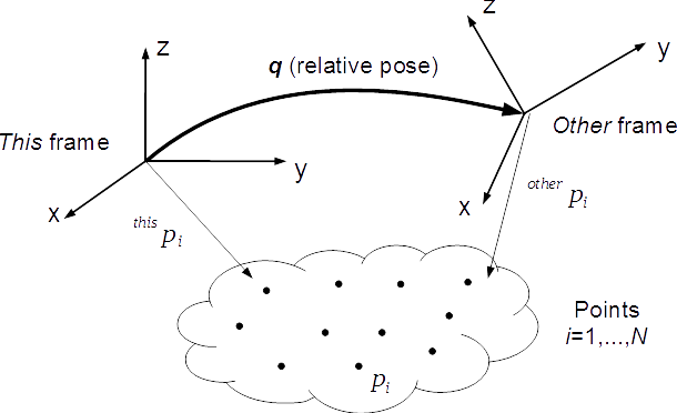 The optimal transformation q fulfills \(p_{this} = q \oplus p_{other}\), that is, the transformation of frame other with respect to this.
