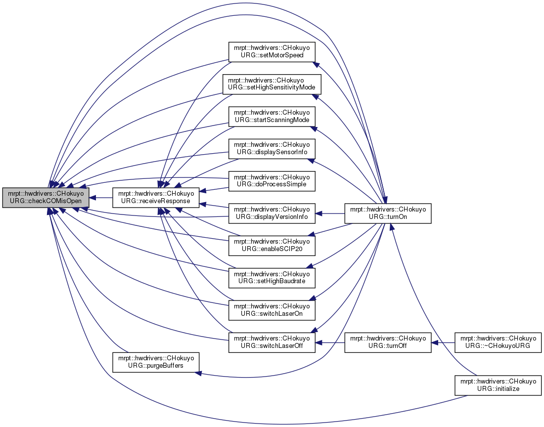 Referenced by assureBufferHasBytes(), mrpt::hwdrivers::C2DRangeFinderAbstract::bindIO(), checkCOMisOpen(), displaySensorInfo(), displayVersionInfo(), enableSCIP20(), mrpt::hwdrivers::CSickLaserSerial::LMS_endContinuousMode(), mrpt::hwdrivers::CSickLaserSerial::LMS_sendMeasuringMode_cm_mm(), mrpt::hwdrivers::CSickLaserSerial::LMS_setupBaudrate(), mrpt::hwdrivers::CSickLaserSerial::LMS_setupSerialComms(), mrpt::hwdrivers::CSickLaserSerial::LMS_startContinuousMode(), mrpt::hwdrivers::CSickLaserSerial::LMS_statusQuery(), mrpt::hwdrivers::CSickLaserSerial::LMS_waitACK(), mrpt::hwdrivers::CSickLaserSerial::LMS_waitIncomingFrame(), purgeBuffers(), mrpt::hwdrivers::CSickLaserSerial::SendCommandToSICK(), setHighBaudrate(), setHighSensitivityMode(), setMotorSpeed(), startScanningMode(), switchLaserOff(), switchLaserOn(), mrpt::hwdrivers::CSickLaserSerial::tryToOpenComms(), turnOn(), mrpt::hwdrivers::CSickLaserSerial::waitContinuousSampleFrame(), ~CHokuyoURG(), and mrpt::hwdrivers::CSickLaserSerial::~CSickLaserSerial().