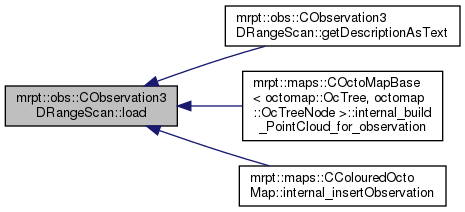 The 2D images and matrices are stored as common images, with an up->down rows order and left->right, as usual. Optionally, the intensity and confidence channels can be set to delayed-load images for off-rawlog storage so it saves memory by having loaded in memory just the needed images. See the methods load() and unload(). Due to the intensive storage requirements of this kind of observations, this observation is the only one in MRPT for which it's recommended to always call "load()" and "unload()" before and after using the observation, ONLY when the observation was read from a rawlog dataset, in order to make sure that all the externally stored data fields are loaded and ready in memory.