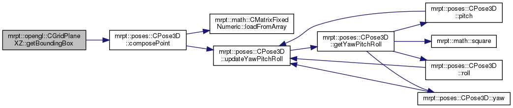 Referenced by mrpt::opengl::C3DSScene::getBoundingBox(), mrpt::opengl::CAssimpModel::getBoundingBox(), mrpt::opengl::CBox::getBoundingBox(), mrpt::opengl::CSimpleLine::getBoundingBox(), mrpt::opengl::CTexturedPlane::getBoundingBox(), mrpt::opengl::CGridPlaneXY::getBoundingBox(), mrpt::opengl::CText3D::getBoundingBox(), getBoundingBox(), mrpt::opengl::CFrustum::getBoundingBox(), mrpt::opengl::CPlanarLaserScan::getBoundingBox(), mrpt::opengl::CPolyhedron::getBoundingBox(), mrpt::opengl::CVectorField2D::getBoundingBox(), mrpt::opengl::CSetOfLines::getBoundingBox(), mrpt::opengl::CVectorField3D::getBoundingBox(), mrpt::opengl::CRenderizable::getPose(), mrpt::opengl::CRenderizable::getPosePitch(), mrpt::opengl::CRenderizable::getPosePitchRad(), mrpt::opengl::CRenderizable::getPoseRef(), mrpt::opengl::CRenderizable::getPoseRoll(), mrpt::opengl::CRenderizable::getPoseRollRad(), mrpt::opengl::CRenderizable::getPoseX(), mrpt::opengl::CRenderizable::getPoseY(), mrpt::opengl::CRenderizable::getPoseYaw(), mrpt::opengl::CRenderizable::getPoseYawRad(), mrpt::opengl::CRenderizable::getPoseZ(), mrpt::opengl::CPolyhedron::getSetOfPolygonsAbsolute(), mrpt::opengl::CRenderizable::readFromStreamRender(), mrpt::opengl::CGeneralizedEllipsoidTemplate< 3 >::render_dl(), mrpt::opengl::CRenderizable::setLocation(), mrpt::opengl::CRenderizable::setPose(), mrpt::opengl::CTexturedPlane::traceRay(), mrpt::opengl::CPolyhedron::traceRay(), and mrpt::opengl::CRenderizable::writeToStreamRender().