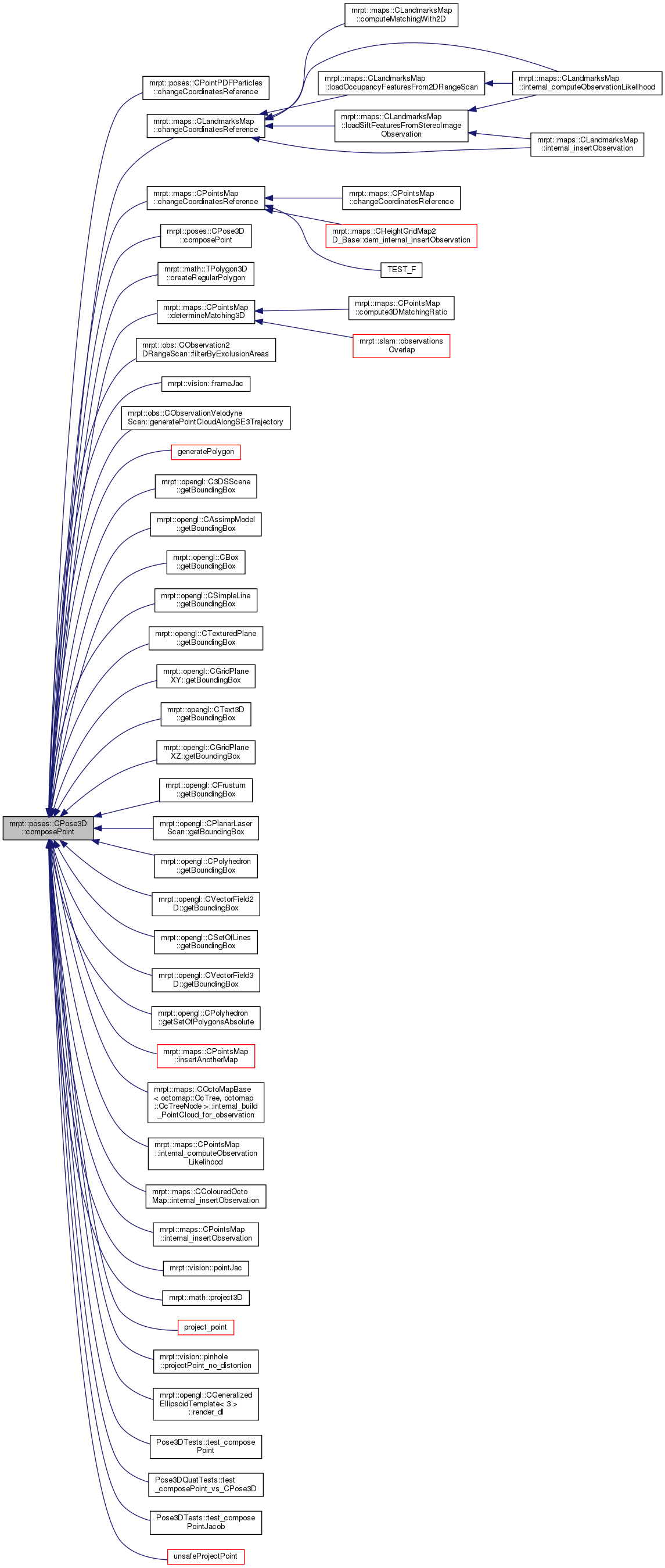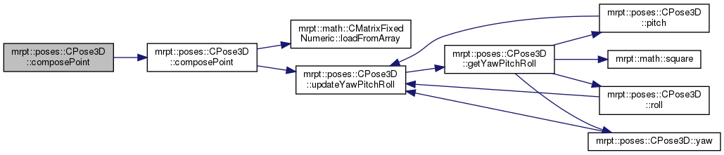 | void | composePoint (const mrpt::math::TPoint3D &local_point, mrpt::math::TPoint3D &global_point) const |