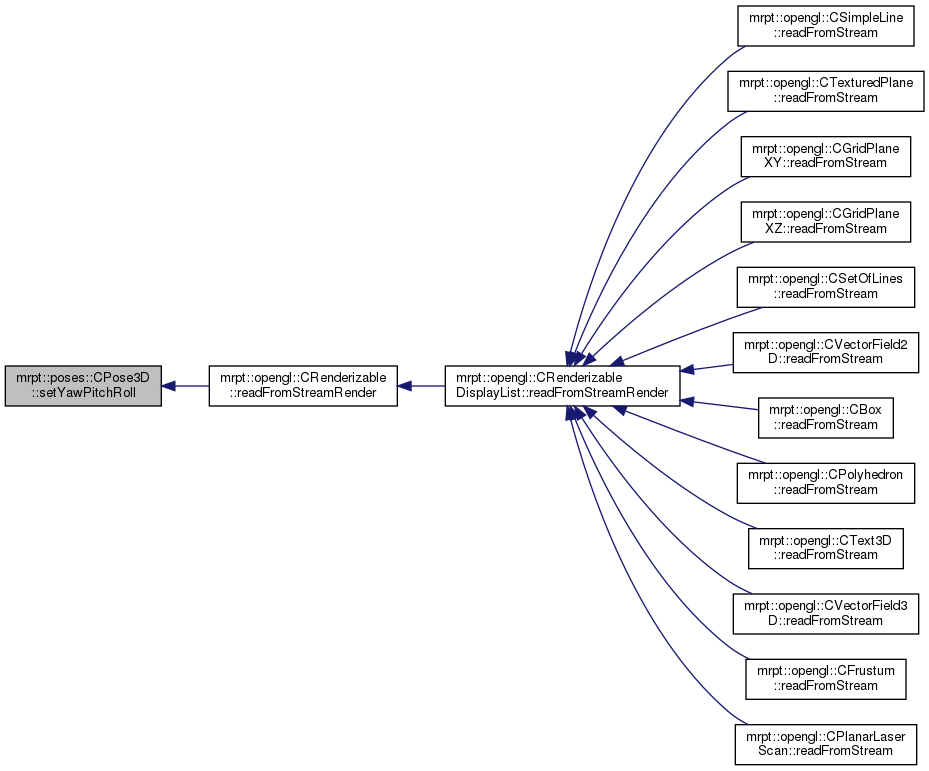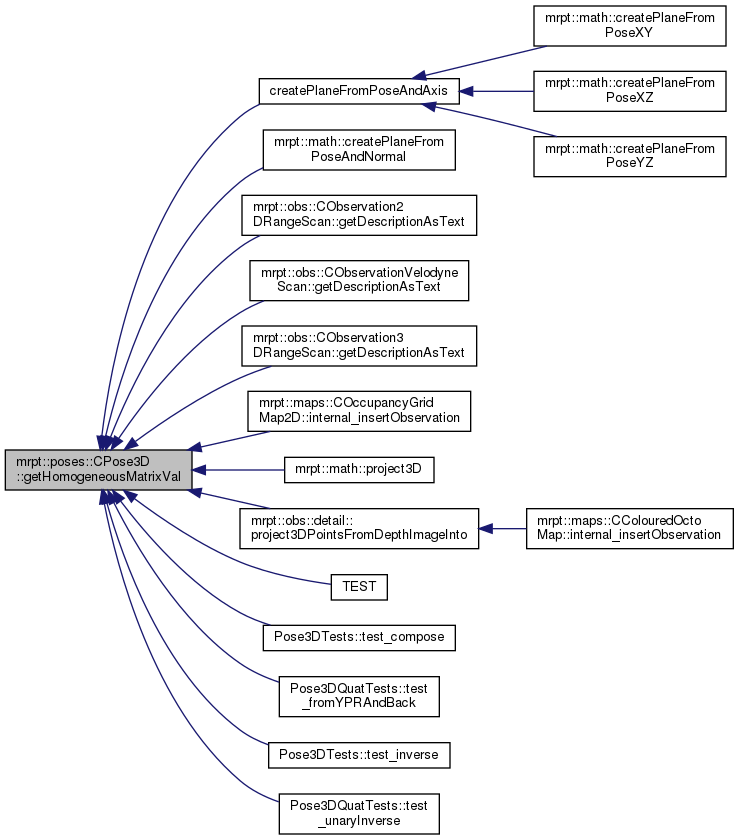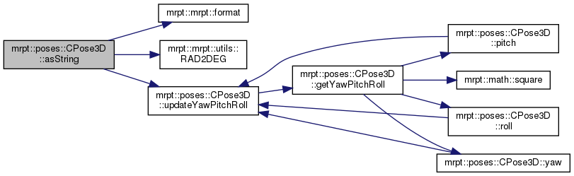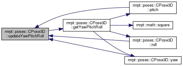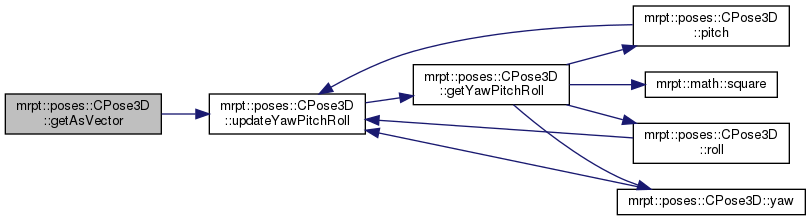 Referenced by mrpt::graphslam::CGraphSlamEngine< GRAPH_T >::accumulateAngleDiffs(), mrpt::graphs::detail::graph_ops< graph_t >::auxEuclid2Dist(), mrpt::graphslam::deciders::CFixedIntervalsNRD< GRAPH_T >::checkRegistrationCondition(), mrpt::graphslam::deciders::CIncrementalNodeRegistrationDecider< GRAPH_T >::checkRegistrationConditionPose(), mrpt::maps::CMultiMetricMapPDF::prediction_and_update< mrpt::slam::OptimalProposal >(), mrpt::obs::CActionRobotMovement3D::computeFromOdometry_model6DOF(), CPose3D(), mrpt::poses::CPoseRandomSampler::do_sample_3D(), mrpt::poses::CPose3DPDFGaussianInf::drawManySamples(), mrpt::poses::CPose3DPDFGaussian::drawManySamples(), mrpt::poses::CPose3DPDFGaussianInf::drawSingleSample(), mrpt::poses::CPose3DPDFGaussian::drawSingleSample(), mrpt::hmtslam::CHierarchicalMapMHPartition::dumpAsText(), mrpt::hmtslam::CLocalMetricHypothesis::getAs3DScene(), mrpt::opengl::CRenderizable::getPoseYaw(), mrpt::opengl::CRenderizable::getPoseYawRad(), getYawPitchRoll(), mrpt::slam::CICP::ICP3D_Method_Classic(), mrpt::maps::CLandmarksMap::internal_computeObservationLikelihood(), mrpt::slam::KLF_loadBinFromParticle(), mrpt::hmtslam::CHMTSLAM::LSLAM_process_message_from_AA(), mrpt::hmtslam::CLocalMetricHypothesis::prediction_and_update(), mrpt::slam::CMetricMapBuilderRBPF::processActionObservation(), mrpt::hmtslam::CLSLAM_RBPF_2DLASER::processOneLMH(), mrpt::poses::CPose3DPDFGaussianInf::saveToTextFile(), mrpt::poses::CPose3DPDFGaussian::saveToTextFile(), mrpt::tfest::se3_l2_robust(), Pose3DTests::test_to_from_2d(), mrpt::opengl::CDisk::traceRay(), mrpt::graphs::detail::graph_ops< graph_t >::write_EDGE_line(), and mrpt::opengl::CRenderizable::writeToStreamRender().