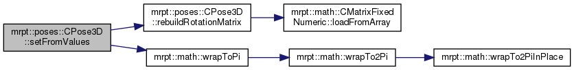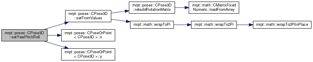 To change the individual components of the pose, use CPose3D::setFromValues. This class assures that the internal 3x3 rotation matrix is always up-to-date with the "yaw pitch roll" members.