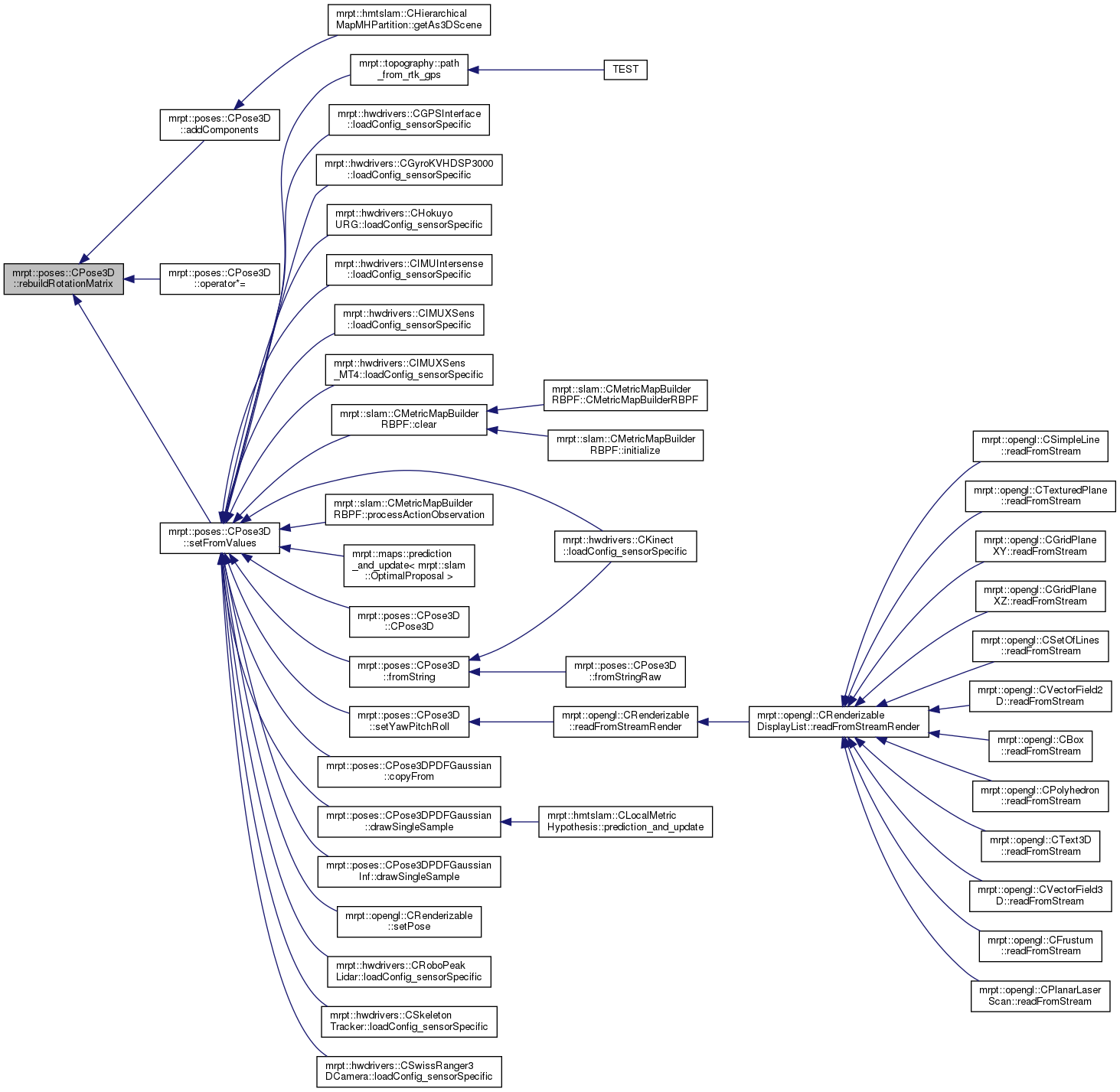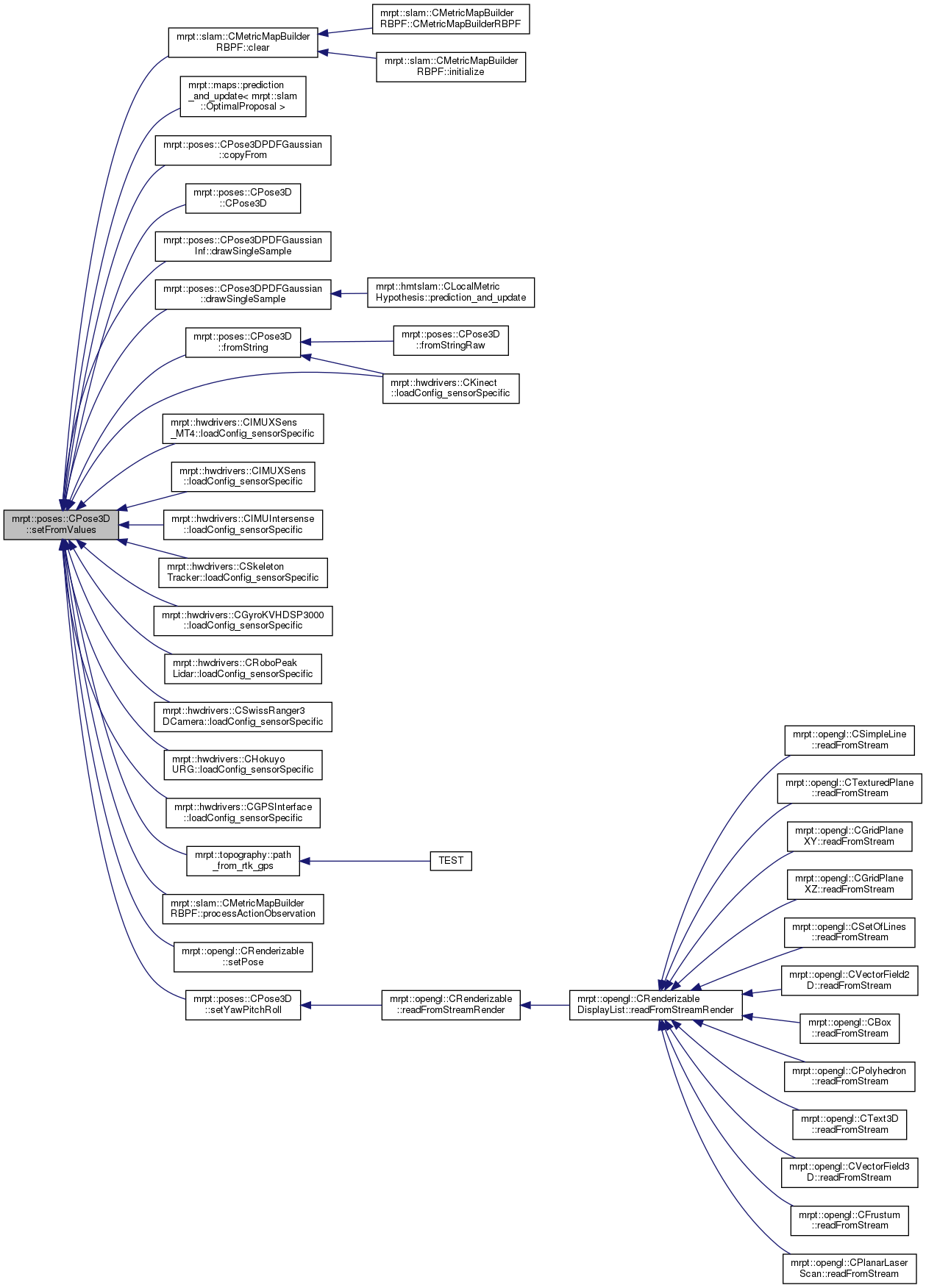 Referenced by mrpt::slam::CMetricMapBuilderRBPF::clear(), mrpt::maps::CMultiMetricMapPDF::prediction_and_update< mrpt::slam::OptimalProposal >(), mrpt::poses::CPose3DPDFGaussian::copyFrom(), CPose3D(), mrpt::poses::CPose3DPDFGaussianInf::drawSingleSample(), mrpt::poses::CPose3DPDFGaussian::drawSingleSample(), fromString(), mrpt::hwdrivers::CIMUXSens_MT4::loadConfig_sensorSpecific(), mrpt::hwdrivers::CIMUXSens::loadConfig_sensorSpecific(), mrpt::hwdrivers::CIMUIntersense::loadConfig_sensorSpecific(), mrpt::hwdrivers::CSkeletonTracker::loadConfig_sensorSpecific(), mrpt::hwdrivers::CGyroKVHDSP3000::loadConfig_sensorSpecific(), mrpt::hwdrivers::CRoboPeakLidar::loadConfig_sensorSpecific(), mrpt::hwdrivers::CSwissRanger3DCamera::loadConfig_sensorSpecific(), mrpt::hwdrivers::CHokuyoURG::loadConfig_sensorSpecific(), mrpt::hwdrivers::CGPSInterface::loadConfig_sensorSpecific(), mrpt::hwdrivers::CKinect::loadConfig_sensorSpecific(), mrpt::topography::path_from_rtk_gps(), mrpt::slam::CMetricMapBuilderRBPF::processActionObservation(), mrpt::opengl::CRenderizable::setPose(), and setYawPitchRoll().