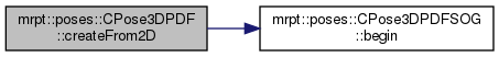 This is a static transformation method from 2D poses to 3D PDFs, preserving the representation type (particles->particles, Gaussians->Gaussians,etc) It returns a new object of any of the derived classes of CPose3DPDF.