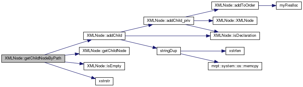 | XMLNode | XMLNode::getChildNodeByPath (XMLCSTR path, char createNodeIfMissing=0, XMLCHAR sep='/') |
