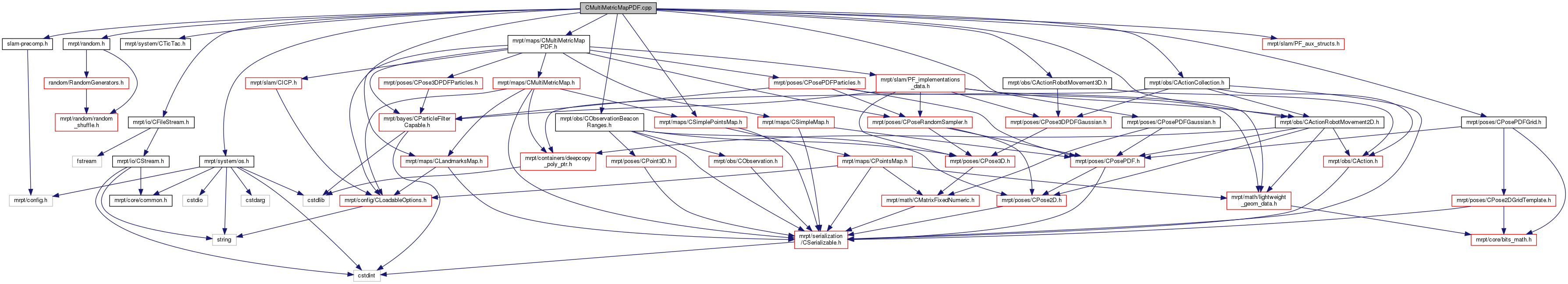 #include "slam-precomp.h"#include <mrpt/random.h>#include <mrpt/system/CTicTac.h>#include <mrpt/io/CFileStream.h>#include <mrpt/system/os.h>#include <mrpt/maps/CMultiMetricMapPDF.h>#include <mrpt/obs/CActionRobotMovement2D.h>#include <mrpt/obs/CActionRobotMovement3D.h>#include <mrpt/obs/CActionCollection.h>#include <mrpt/poses/CPosePDFGaussian.h>#include <mrpt/poses/CPosePDFGrid.h>#include <mrpt/obs/CObservationBeaconRanges.h>#include <mrpt/maps/CSimplePointsMap.h>#include <mrpt/maps/CLandmarksMap.h>#include <mrpt/slam/PF_aux_structs.h>
