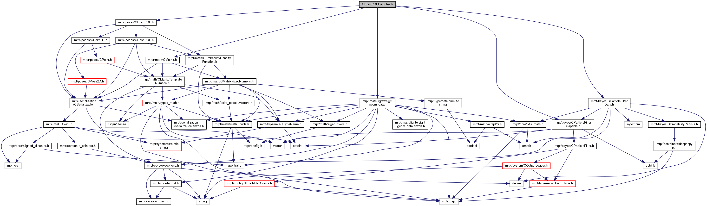 #include <mrpt/poses/CPointPDF.h>#include <mrpt/math/CMatrix.h>#include <mrpt/math/lightweight_geom_data.h>#include <mrpt/bayes/CParticleFilterCapable.h>#include <mrpt/bayes/CParticleFilterData.h>